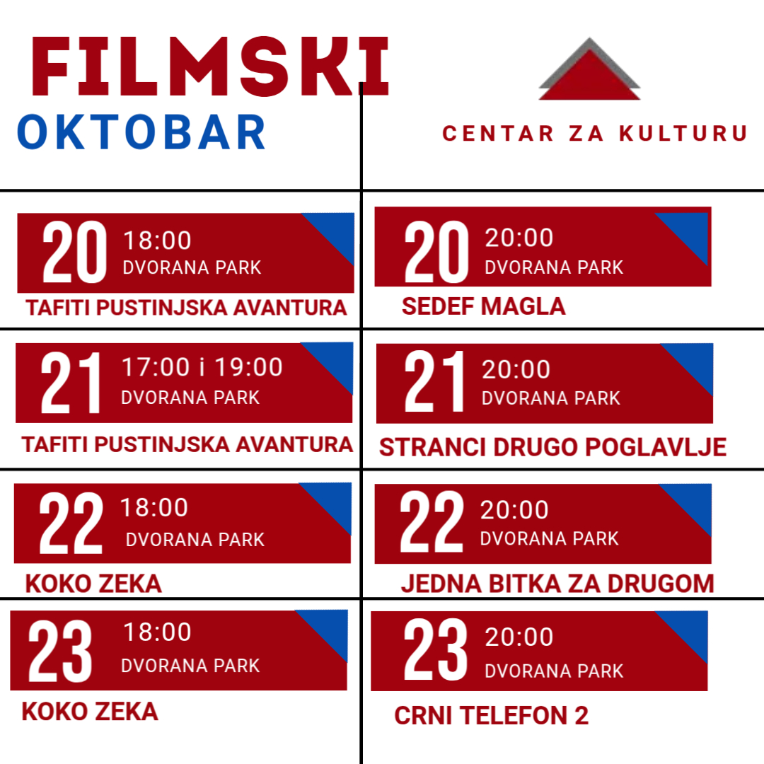 БИОСКОПСКИ ПРОГРАМ У ОКТОБРУ